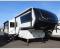 You're going to love every minute spent in this spacious fifth wheel that can sleep four. There is an inviting rear living area with a 72" tri-fold sofa and theater seating across from the televator and fireplace. The chef of your group can whip up dinner on the three burner cooktop or in the 30" residential microwave, and there is a 16 cu. ft. refrigerator that even opens when with the slide out is in. You will also enjoy the kitchen island with a farmhouse sink and roller cover, dual trash bins with a Stow N' Go paper towel holder, plus convenient dog bowls for your furry friends. You can store all your paper goods and snacks in the 84" pantry with adjustable shelving, and there is a hutch for nice dishes plus shoe storage in this model as well. Head to the front master bedroom where you'll find a queen bed with a TV, a large slide out with a wardrobe with drawers, plus a spacious bath.